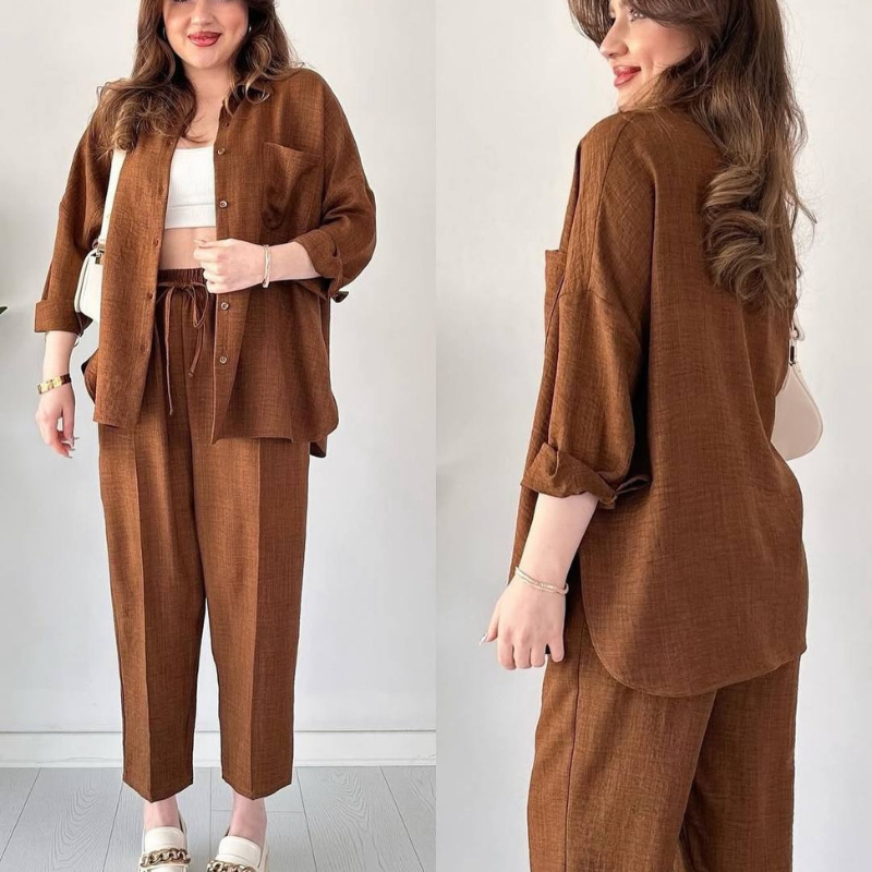 Ensemble 2 Pièces en Crêpe Froissé – Chic & Confort